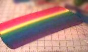 I cut one thin strip from the rainbow blended sheet (about 3/8" wide) and added it to a sheet of translucent clay and