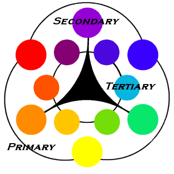 Looking at the color wheel, you can see that every primary color is opposite a "secondary" color, a color that is mixed from two primary