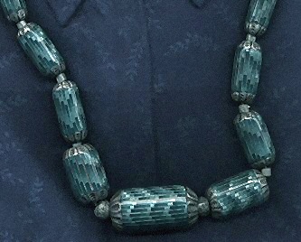 She signed up for the bargello swap that I hosted, and in the middle of going crazy with that, she decides to challenge me to a "One Color Metallic Bargello Duel." As you can see, she won. LOL! It wouldn't have mattered what I made, she won! Look at this necklace that she made me! I almost fell down when I saw it. I haven't ever worn much jewelry, but I am happy to wear this piece. |