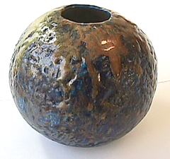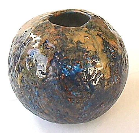 ![]() I love this funny little pot. I'm going to do more of these, I think. The combination of paints and powders and textures is just more than my little brain can process all at once. *g* The top of the pot has a lot of pearlex and a glossy glaze. The bottom part is mostly cobalt blue and burnt umber, and has a matte glaze, which brings out the color, but doesn't make it shiny. |